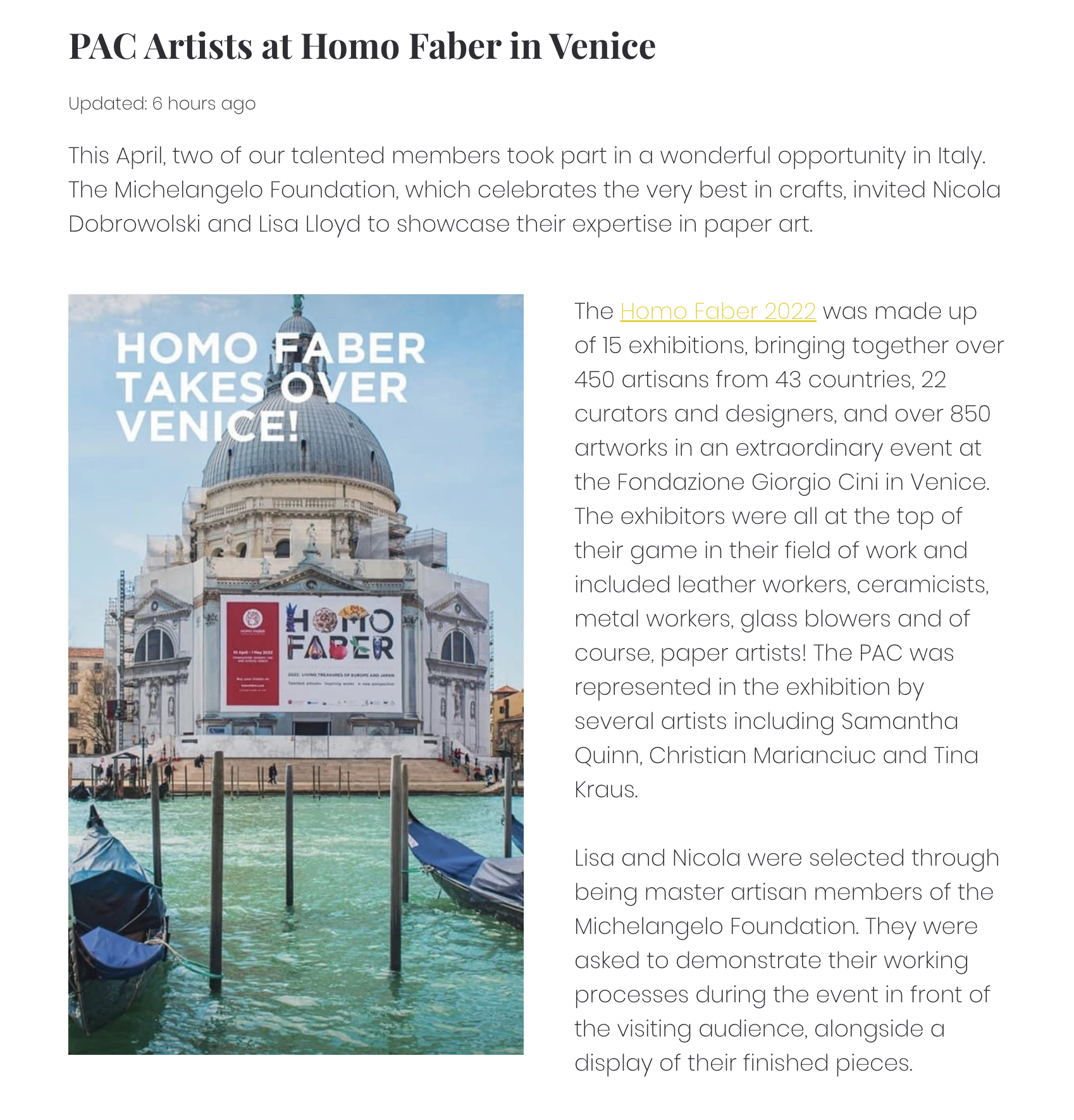 Feature on The paper artists collective blog about her trip to Venice.