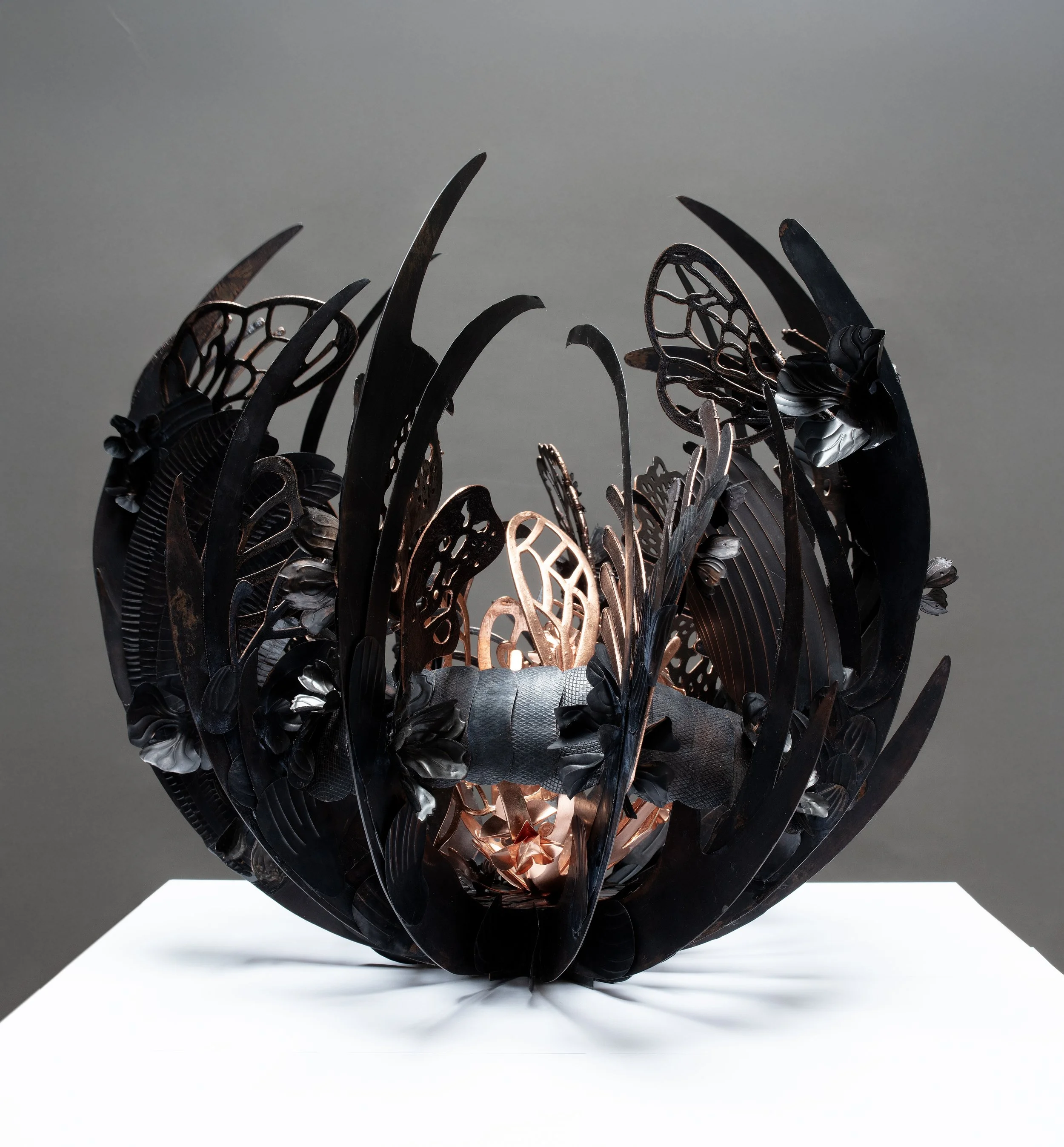 Materials: Electro formed paper (copper), copper sheets, liver of sulfur patination, renaissance wax and gloss varnish.
